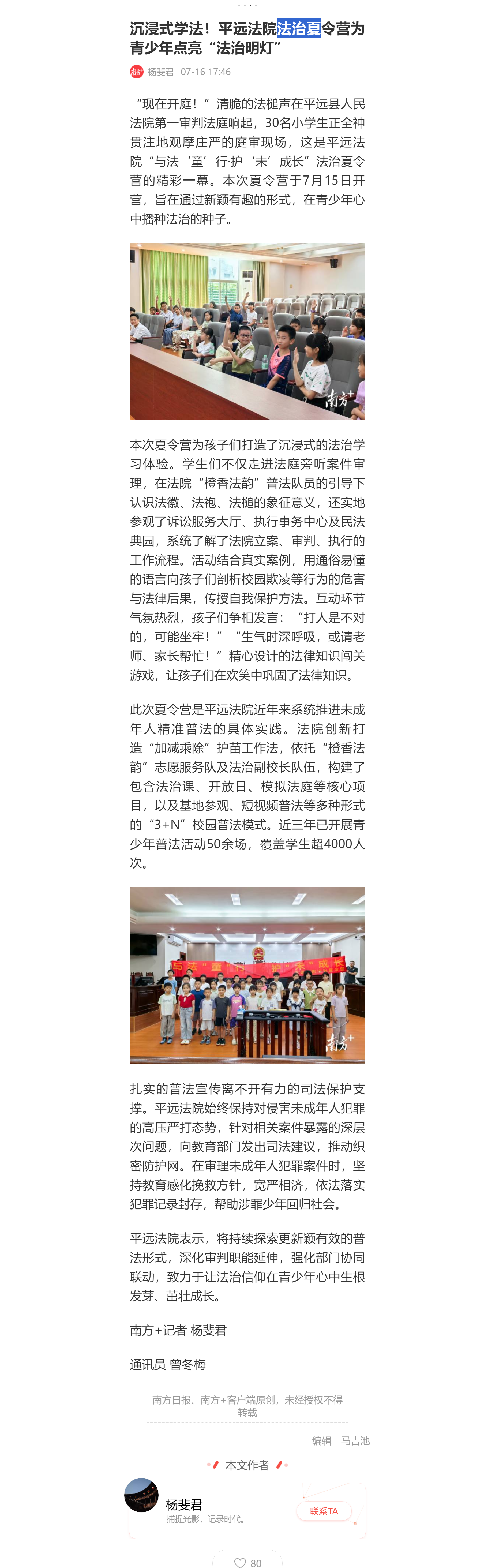 沉浸式学法!平远法院法治夏令营为青少年点亮“法治明灯”
