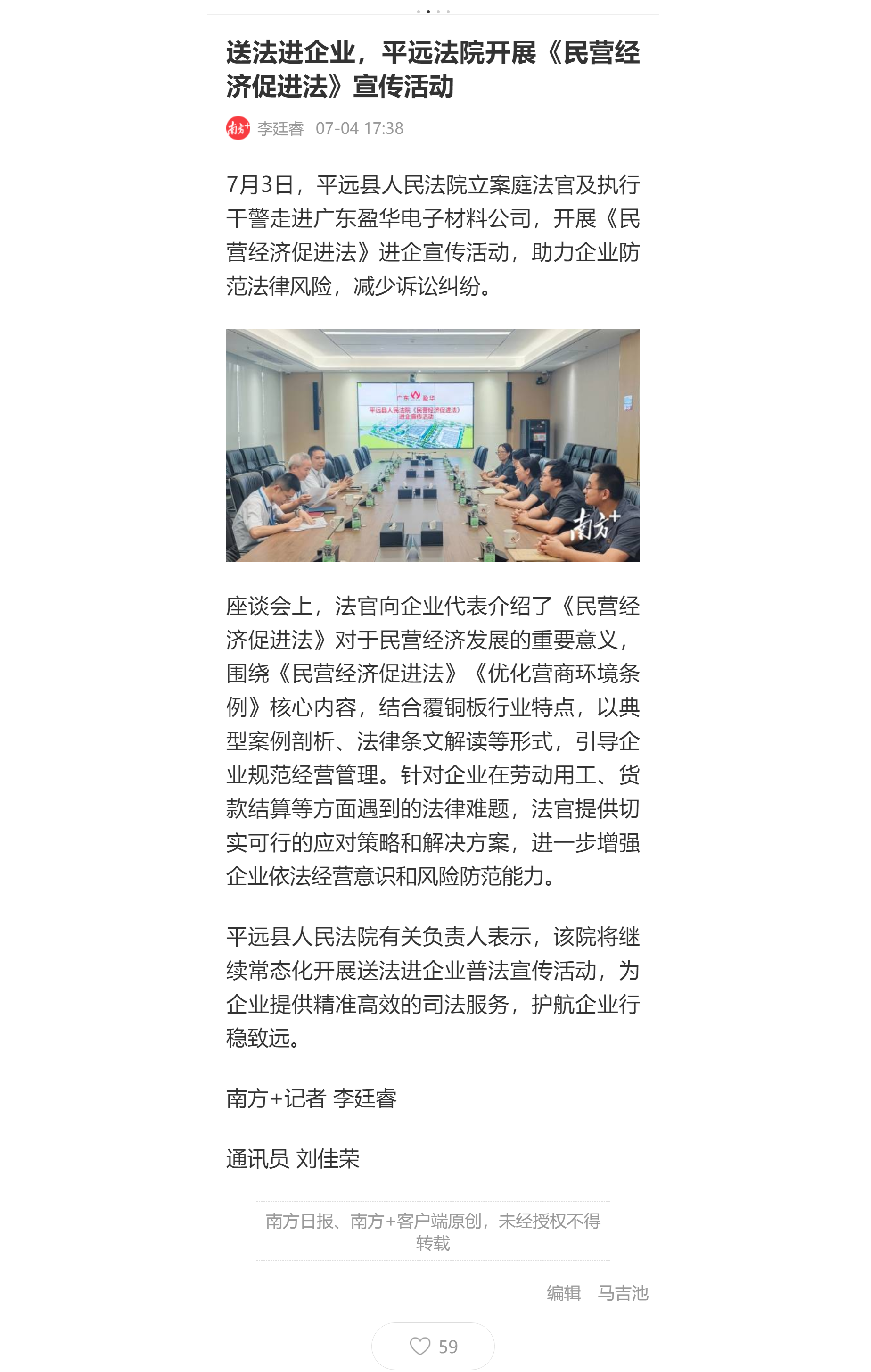 送法进企业,平远法院开展《民营经济促进法》宣传活动